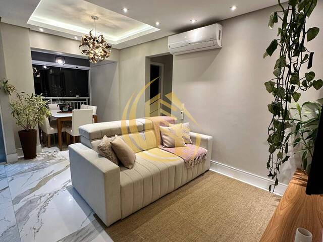 Sala com piso porcelanato, Sanca rebaixada em gesso com iluminação em led, painel planejado para TV, ar condicionado, varanda integrada a sala.